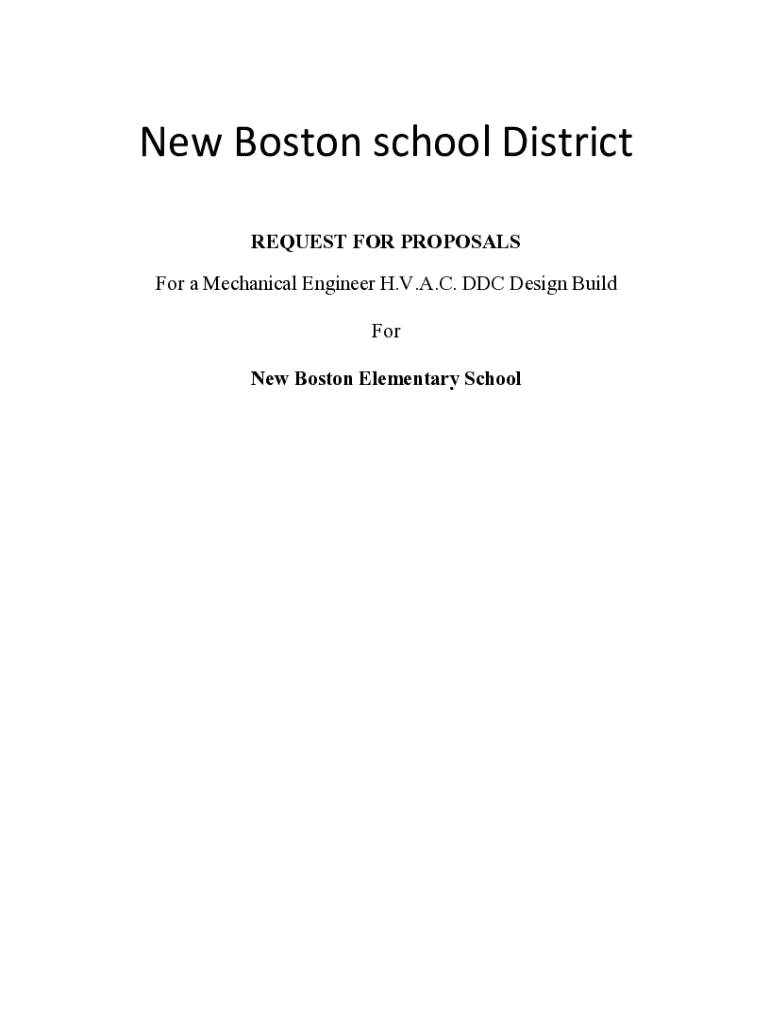 New Boston school District REQUEST FOR PROPOSALS For a Mechanical Engineer H.V.A.C. DDC Design Build For New Boston Elementary SchoolRFP for Mechanical Engineering H.V.A.C. DDC RFPREQUEST FOR PROPOSALS