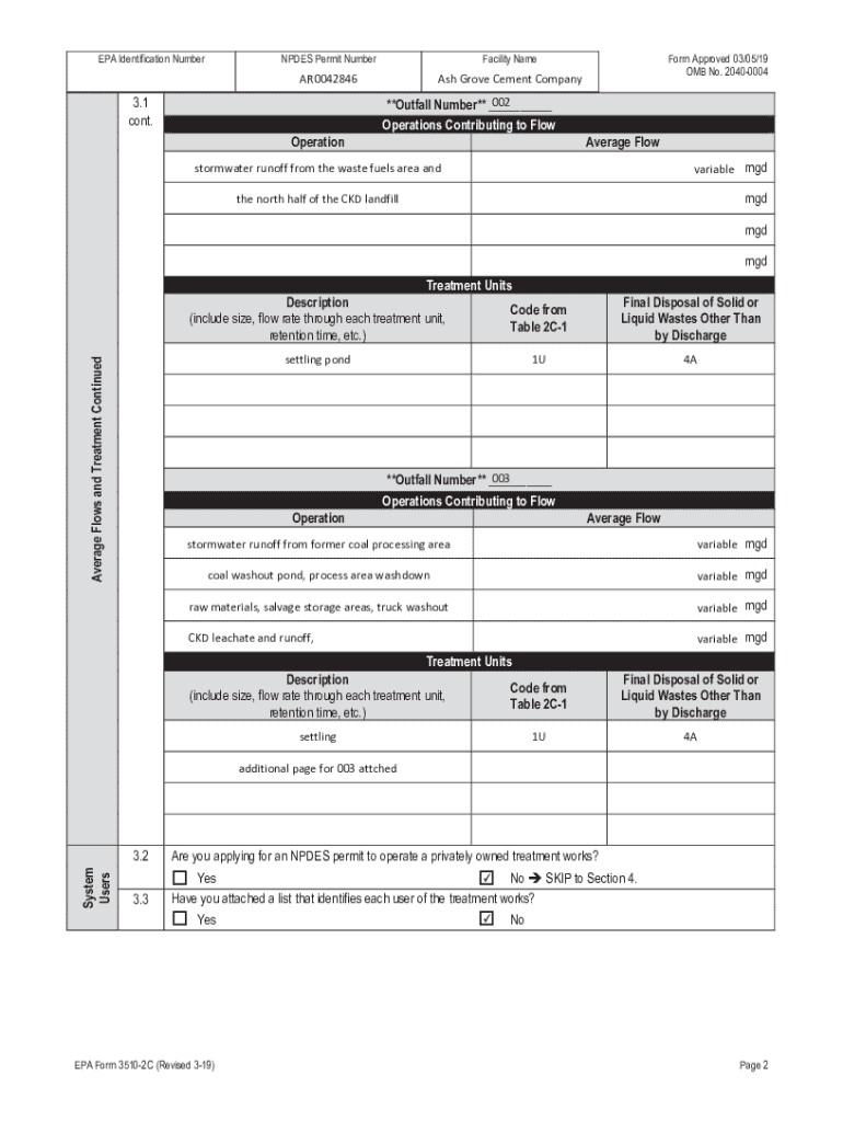 EPA Form 3510-2C is a report form used for the National Pollutant Discharge Elimination System (NPDES) to provide information on discharges from specific facilities.