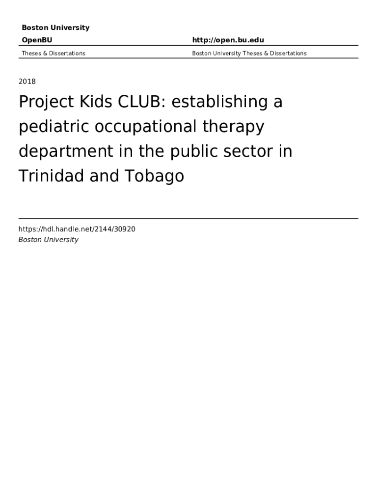 This document outlines a proposal for the establishment of a pediatric occupational therapy department within the public healthcare system of Trinidad and Tobago. The initiative aims to address the significant gap in accessible therapy services for children with disabilities, emphasizing the benefits of occupational therapy in enhancing children\'s functional skills and overall wellbeing. The project includes a comprehensive research basis demonstrating demand for services, proposed...