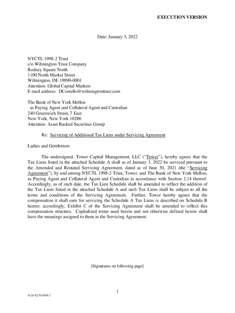 EXECUTION VERSIONDate: January 3, 2022NYCTL 19982 Trust c/o Wilmington Trust Company Rodney Square North 1100 North Market Street Wilmington, DE 198900001 Attention: Global Capital Markets Email address: