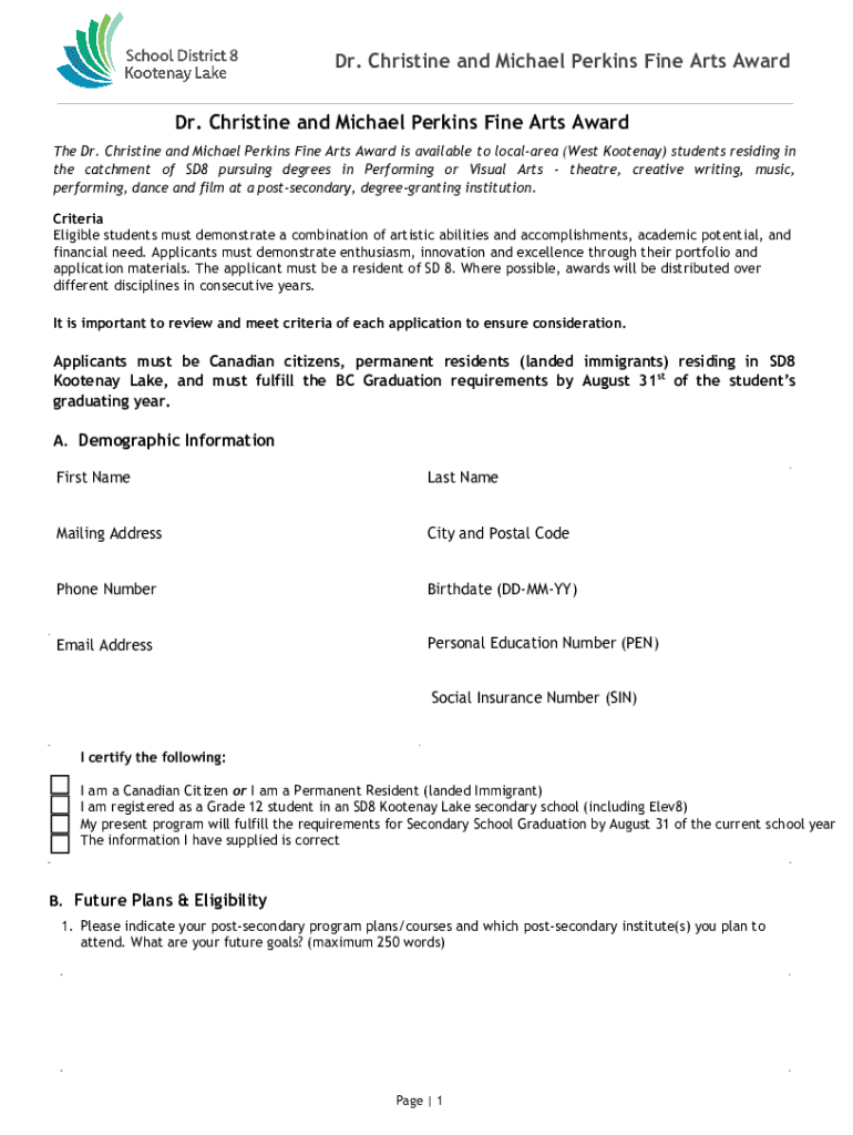 Get the free Dr. Christine and Michael Perkins Fine Arts Award