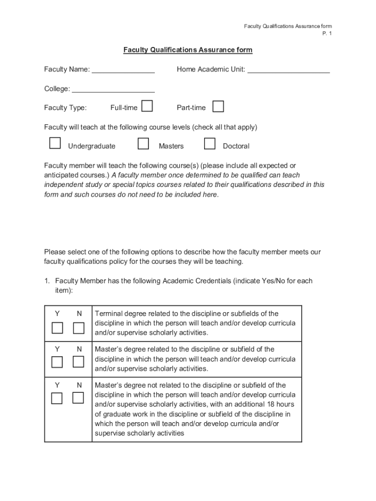 Faculty Qualifications Assurance Form is not the form you're looking for?Search for another form here.