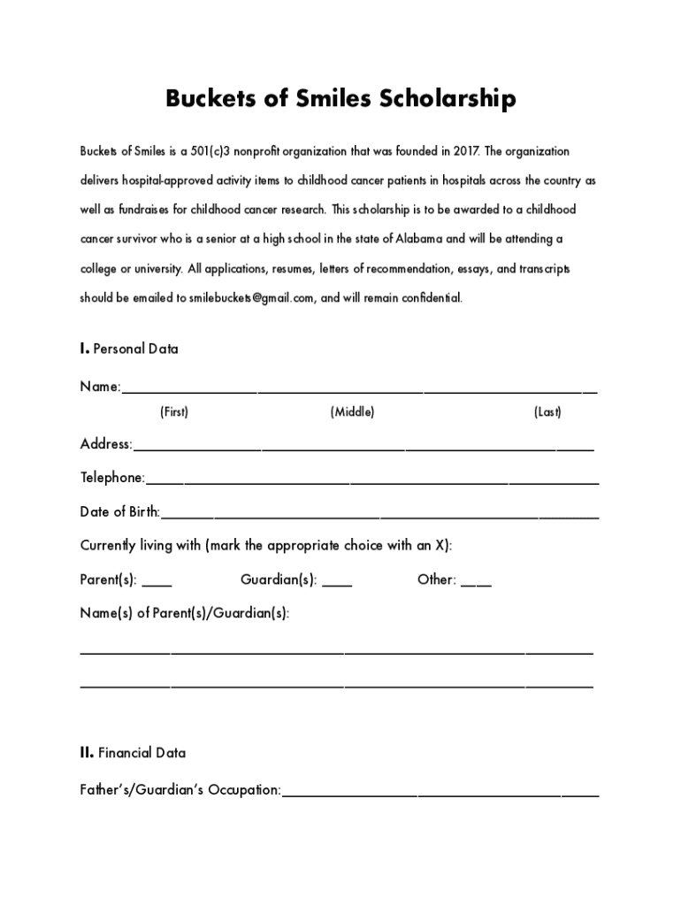 Fill out your buckets of smiles scholarship online with pdfFiller!