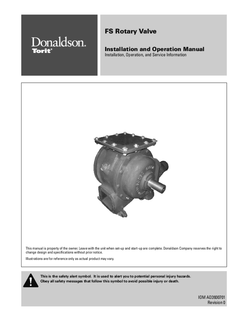 FS Rotary Valve Installation and Operation Manual Installation, Operation, and Service InformationThis manual is property of the owner. Leave with the unit when setup and startup are complete. Donaldson