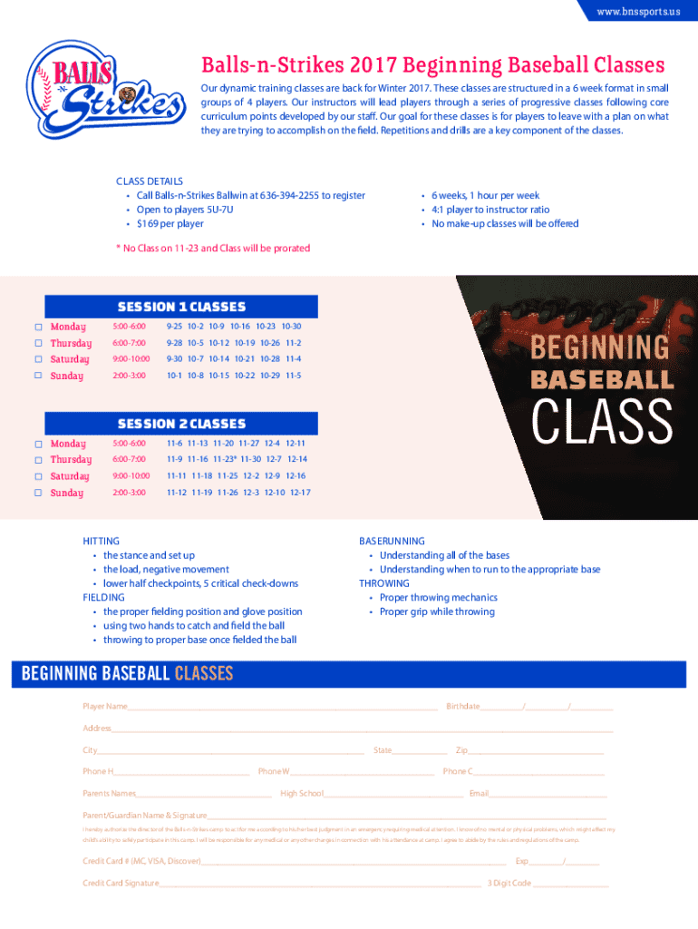 Get the free Balls-n-strikes Beginning Baseball Classes Registration