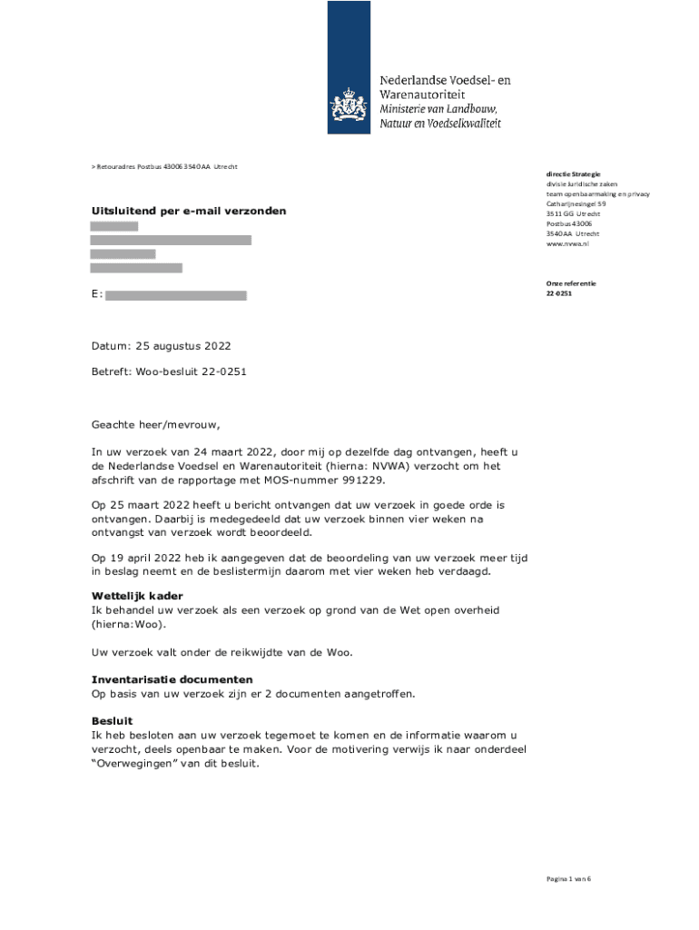 Retouradres Postbus 43006 3540 AA UtrechtUitsluitend per email verzondenE:directie Strategie divisie Juridische zaken team openbaarmaking en privacy Catharijnesingel 59 3511 GG Utrecht Postbus 43006