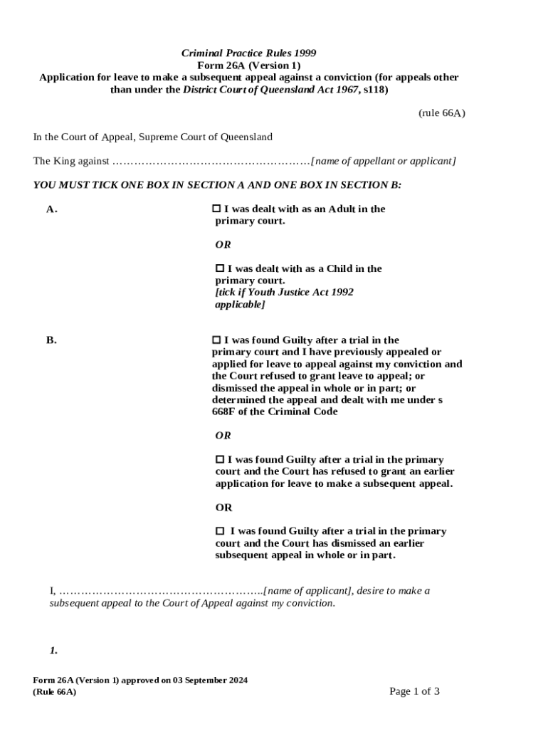 What is 26A - Application for leave to make a subsequent ... Form?