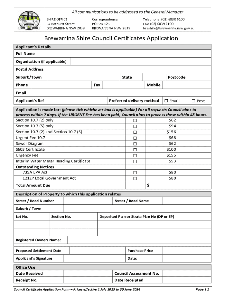 Fill out your certificate-application-form-to-30- - brewarrina nsw online with pdfFiller!