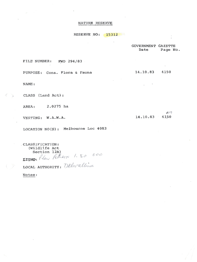 To fill out a nature reserve form, gather necessary information about the land, its ecological significance, any existing species, and conservation practices in place, then follow the specific guidelines provided by the regulatory authority.