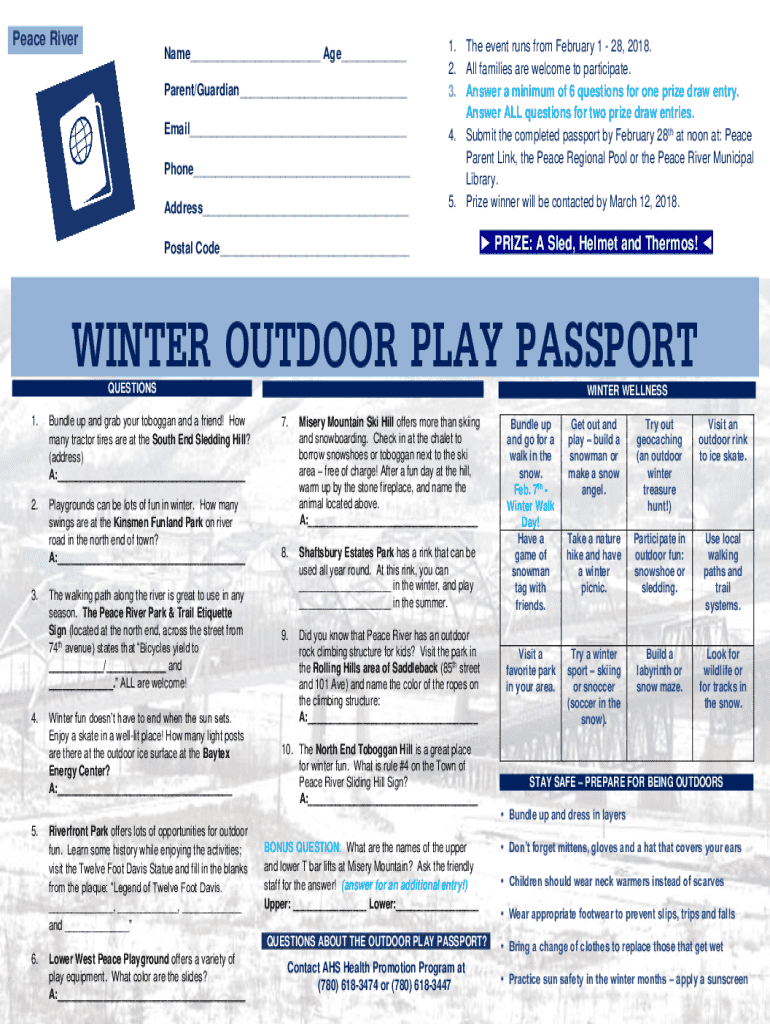Peace RiverName___ Age___ Parent/Guardian___ Email___ Phone___ Address___1. The event runs from February 1 28, 2018. 2. All families are welcome to participate. 3. Answer a minimum of 6 questions