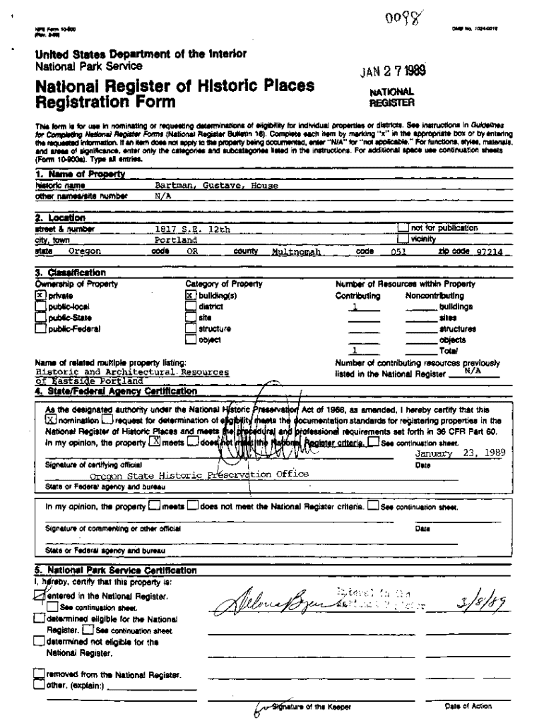Get the free National Register of Historic Places Registration Form