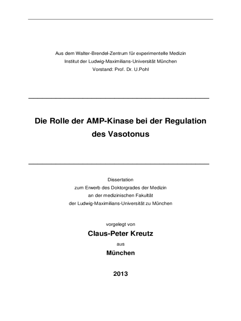 Aus dem WalterBrendelZentrum fr experimentelle Medizin Institut der LudwigMaximiliansUniversitt Mnchen Vorstand: Prof. Dr. U.Pohl___Die Rolle der AMPKinase bei der Regulation des Vasotonus___ Dissertation