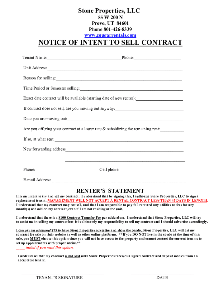 Get the free Notice of Intent to Sell Contract