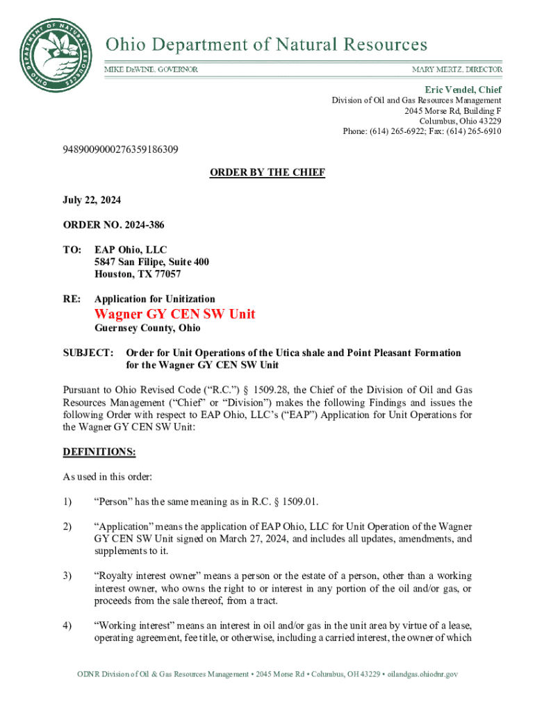 Eric Vendel, ChiefDivision of Oil and Gas Resources Management 2045 Morse Rd, Building F Columbus, Ohio 43229 Phone: (614) 2656922; Fax: (614) 26569109489009000276359186309 ORDER BY THE CHIEF July