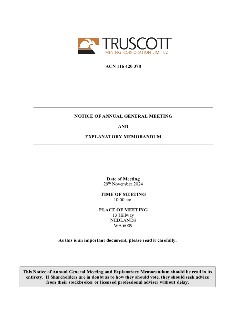 Get the free ACN 116 420 378 NOTICE OF ANNUAL GENERAL ...