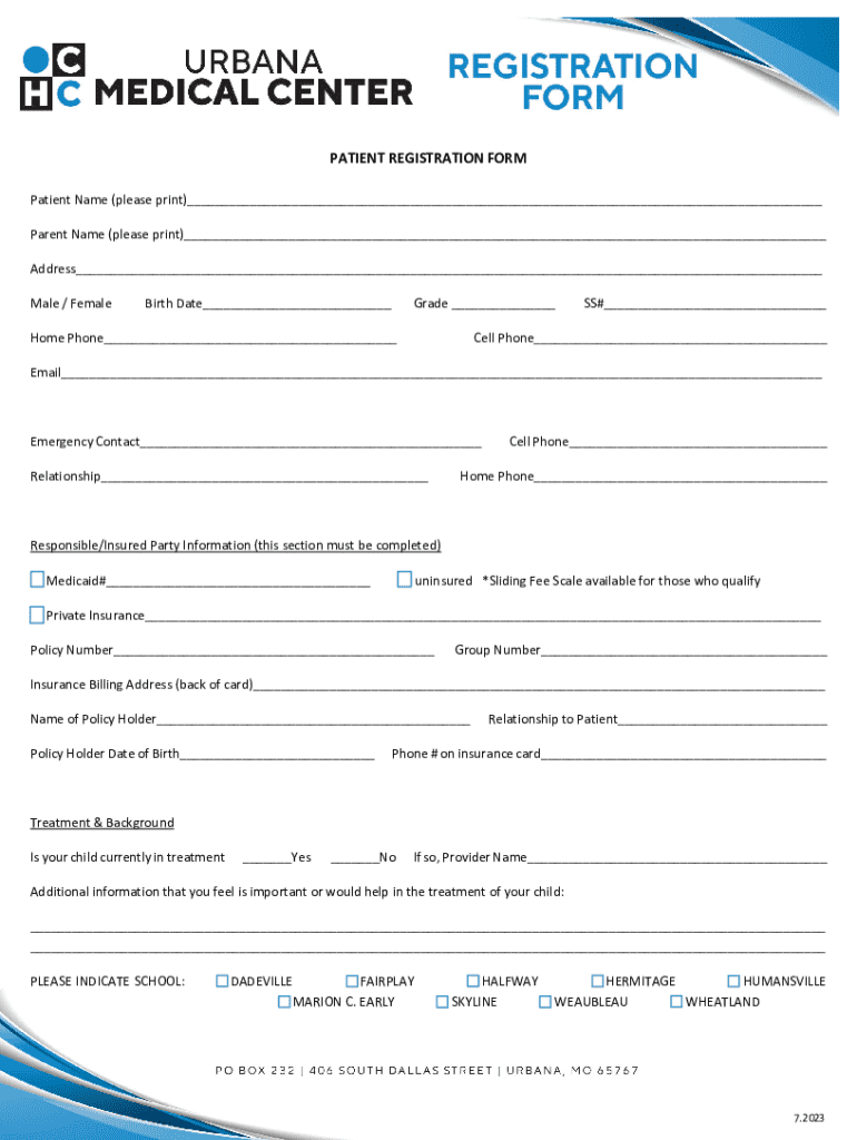 PATIENT REGISTRATION FORM Patient Name (please print)___ Parent Name (please print)___ Address___ Male / FemaleBirth Date___Grade ___Home Phone___SS#___Cell Phone___Email___Emergency Contact___ Relationship___Cell