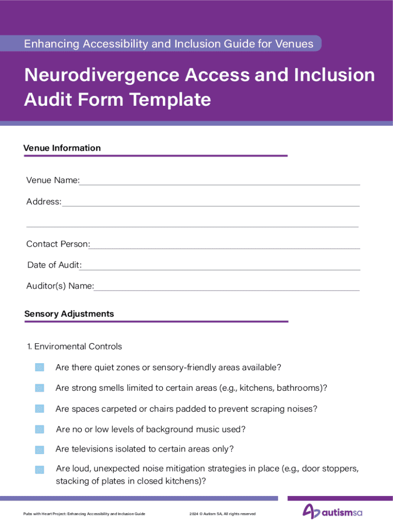 Get the free Neurodivergence Access and Inclusion Audit Form Template - autismsa org