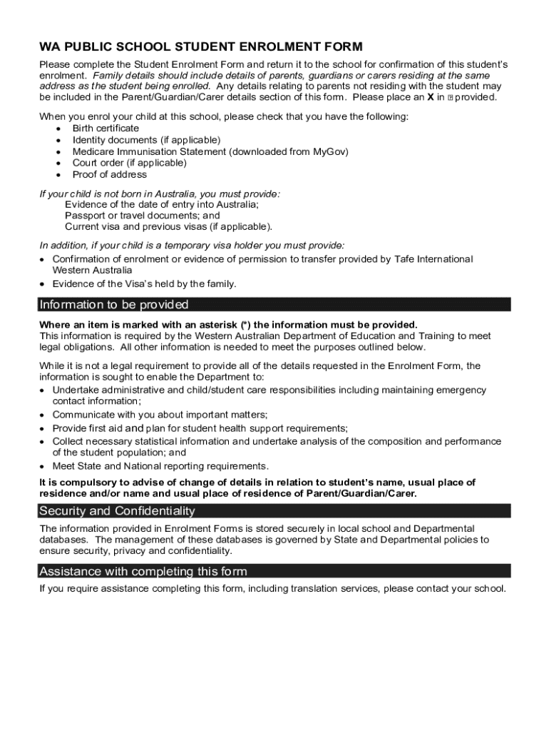 WA PUBLIC SCHOOL STUDENT ENROLMENT FORM Please complete the Student Enrolment Form and return it to the school for confirmation of this students enrolment. Family details should include details of