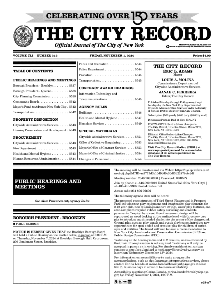 5537CELEBRATING OVERVOLUME CLINUMBER 212YEARSFRIDAY, NOVEMBER 1, 2024 Price: $4.00Parks and Recreation 5544TABLE OF CONTENTSPolice Department 5544PUBLIC HEARINGS AND MEETINGSTransportation