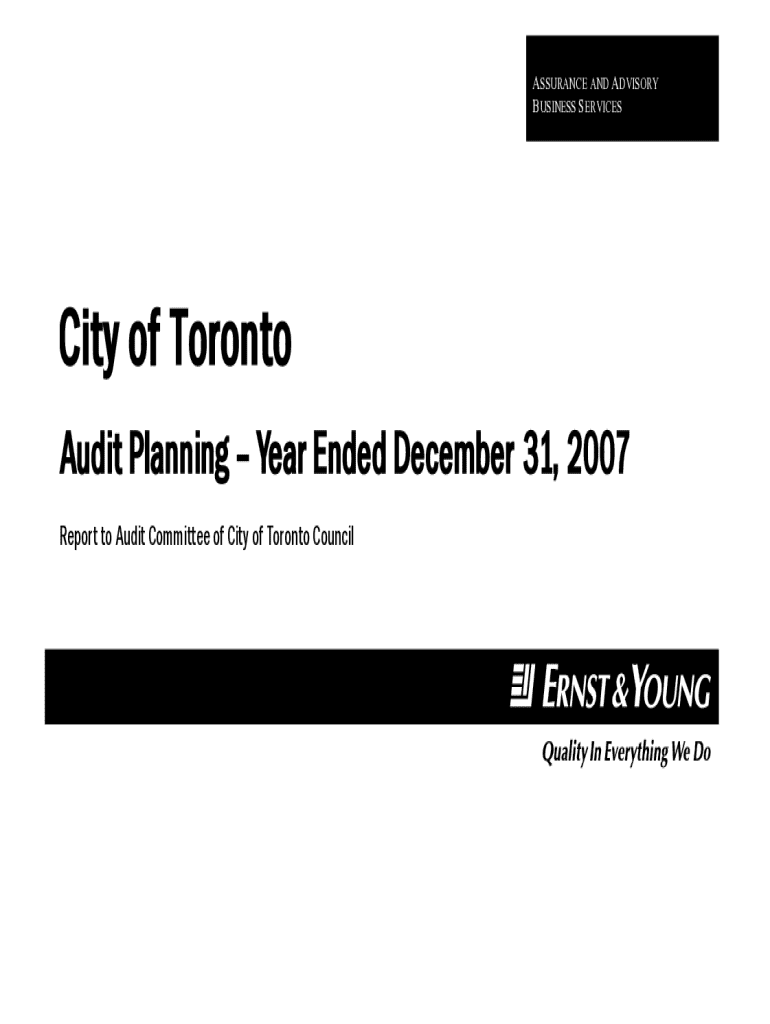 ASSURANCE AND ADVISORY BUSINESS SERVICESCity of Toronto Audit Planning Year Ended December 31, 2007 Report to Audit Committee of City of Toronto CouncilEnChartered Accountants Ernst & Young Tower