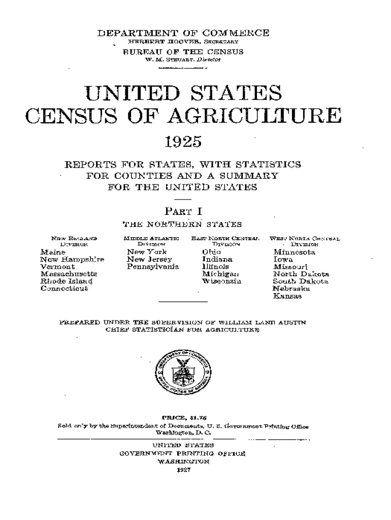 DEPARTMENT OF COMMERCE HERBERT HOOVER, SECRETARYBUREAU OF THE CENSUS W. M. STEUART,DirectorUNITED STATES CENSUS OF AGRICULTURE 1925 REPORTS FOR STATES, WITH STATISTICS FOR COUNTIES AND A SUMMARY FOR