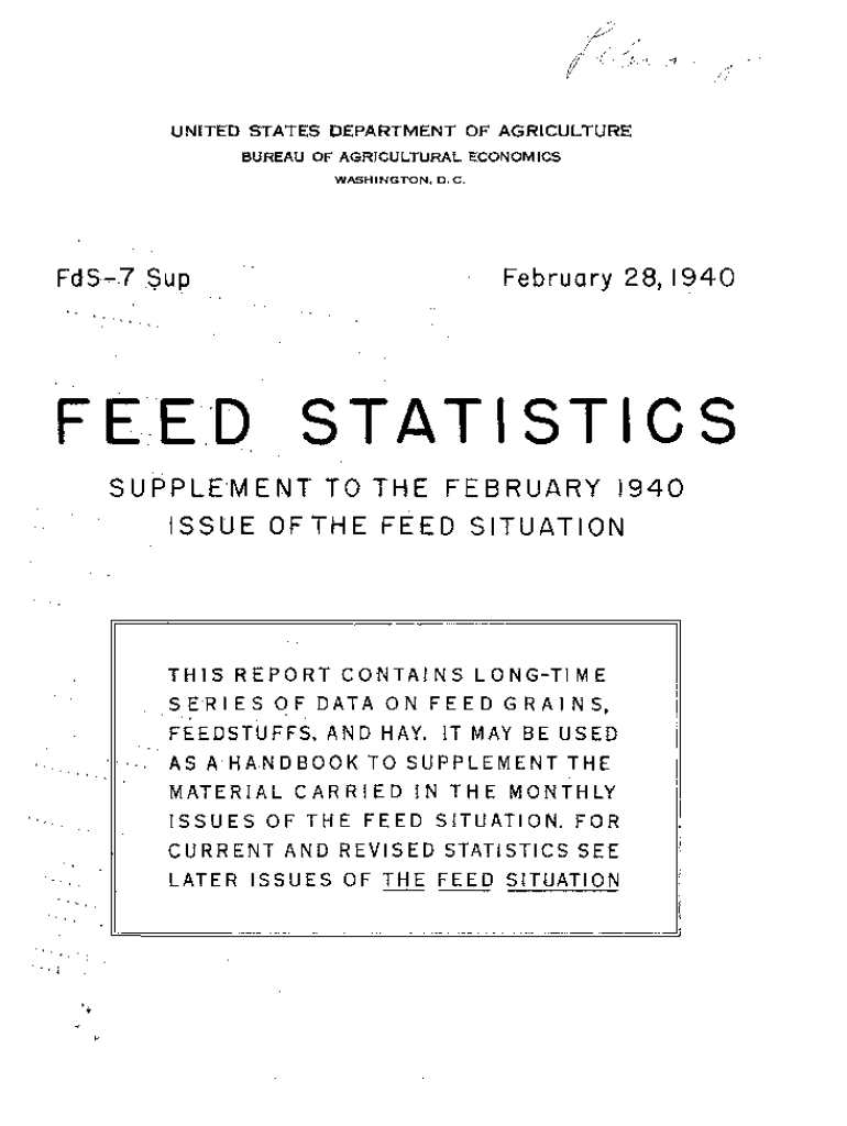 UNITED STATES DEPARTMENT OF AGRICULTURE BUREAU OF AGRICULTURAL ECONOMICS WASHINGTON; D.C.FdS...7 .Sup ... .February 28, 1940...STATISTICS ..SUPPLEMENT TO THE FEBRUARY 1940 ISSUE GFTHE FEED SITUATION
