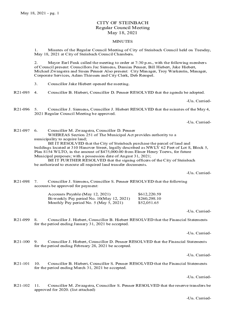 Get the free May 18, 2021 at City of Steinbach Council Chambers