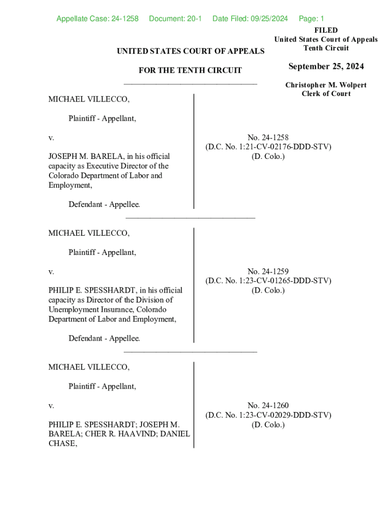 Appellate Case: 241258Document: 201Date Filed: 09/25/2024UNITED STATES COURT OF APPEALS FOR THE TENTH CIRCUIT ___ MICHAEL VILLECCO,Page: 1FILED United States Court of Appeals Tenth CircuitSeptember