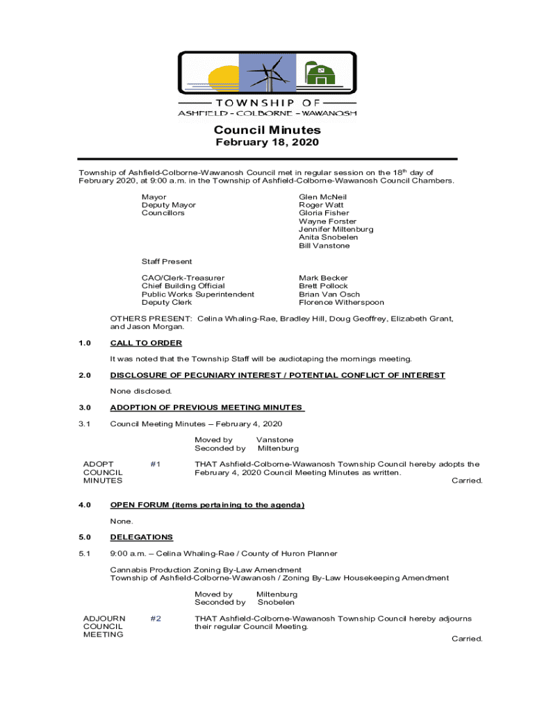 Get the free Township of Ashfield-Colborne-Wawanosh Council met in regular session on the 18th da...