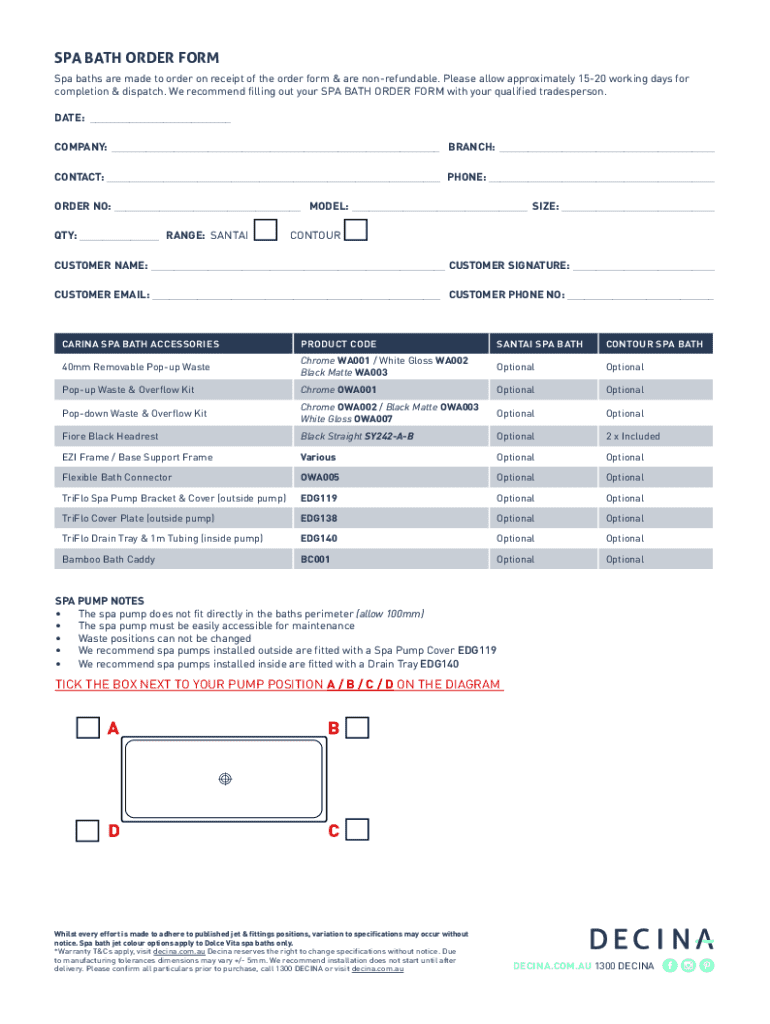 Carina Spa Bath Order is not the form you're looking for?Search for another form here.
