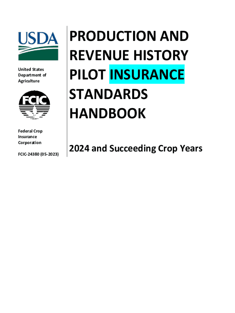 United States Department of AgricultureFederal Crop Insurance Corporation FCIC24380 (052023)PRODUCTION AND REVENUE HISTORY PILOT INSURANCE STANDARDS HANDBOOK 2024 and Succeeding Crop YearsTHIS PAGE