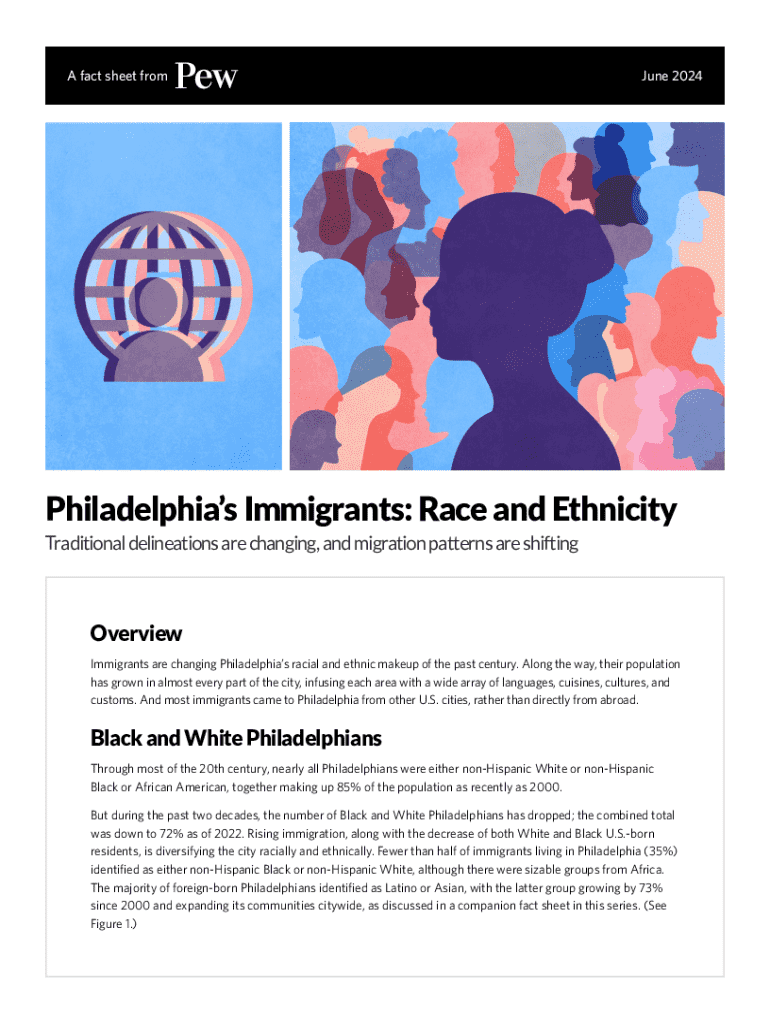 A fact sheet fromJune 2024Philadelphias Immigrants: Race and Ethnicity Traditional delineations are changing, and migration patterns are shiftingOverview Immigrants are changing Philadelphias racial