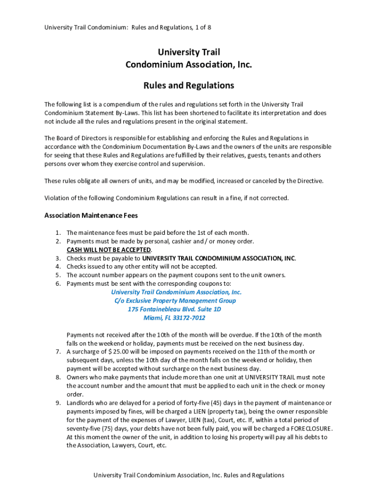 University Trail Condominium: Rules and Regulations, 1 of 8University Trail Condominium Association, Inc. Rules and Regulations The following list is a compendium of the rules and regulations set
