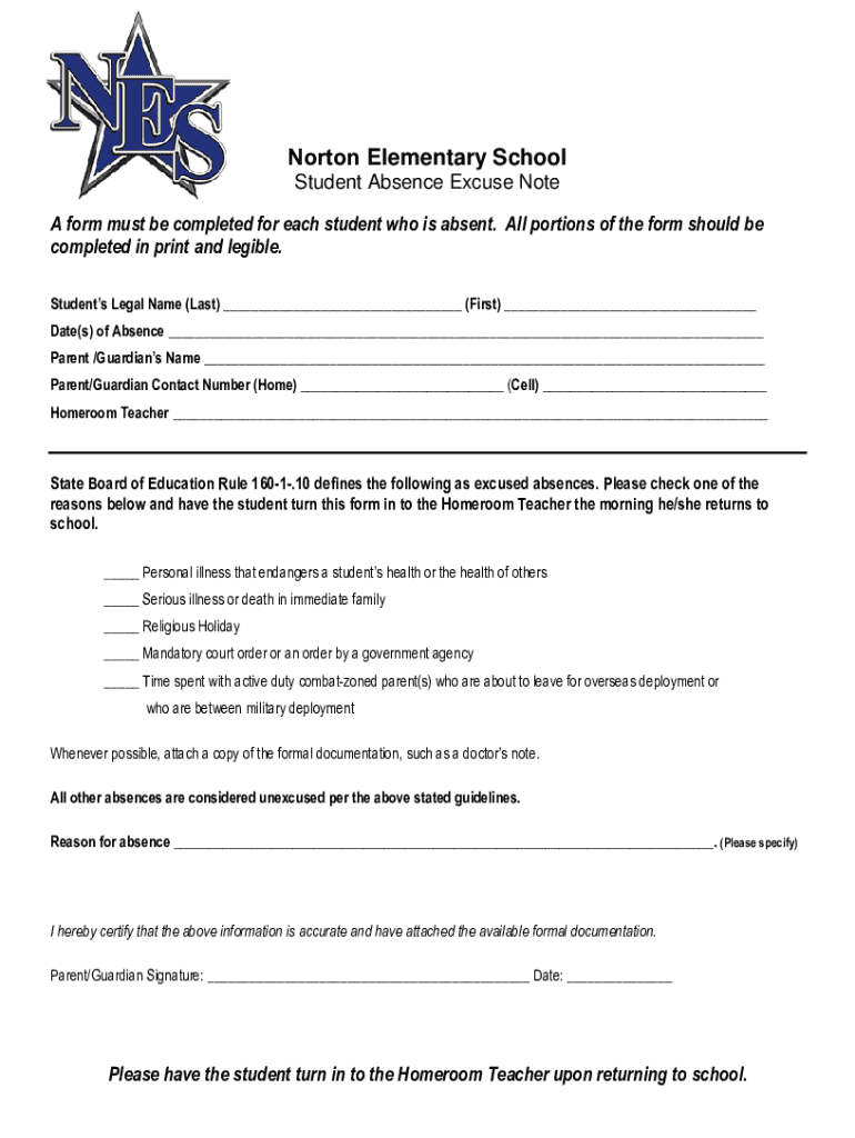 Get the free Student Absence Excuse Note