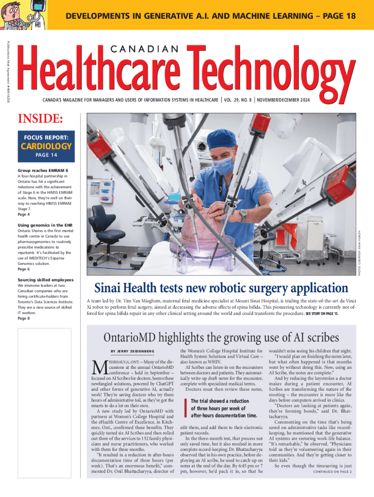 DEVELOPMENTS IN GENERATIVE A.I. AND MACHINE LEARNING PAGE 18VOL. 29, NO. 8NOVEMBER/DECEMBER 2024INSIDE: FOCUS REPORT:CARDIOLOGY PAGE 14 Group reaches EMRAM 6 A fourhospital partnership in Ontario
