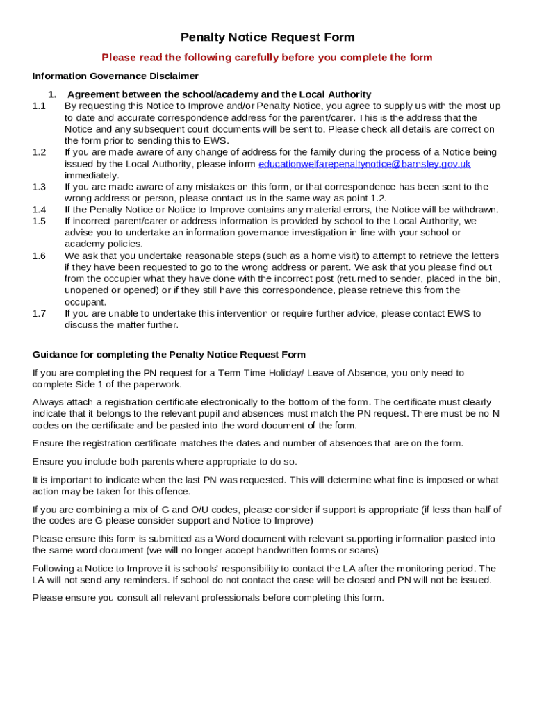 How to fill Penalty Notice Request word template