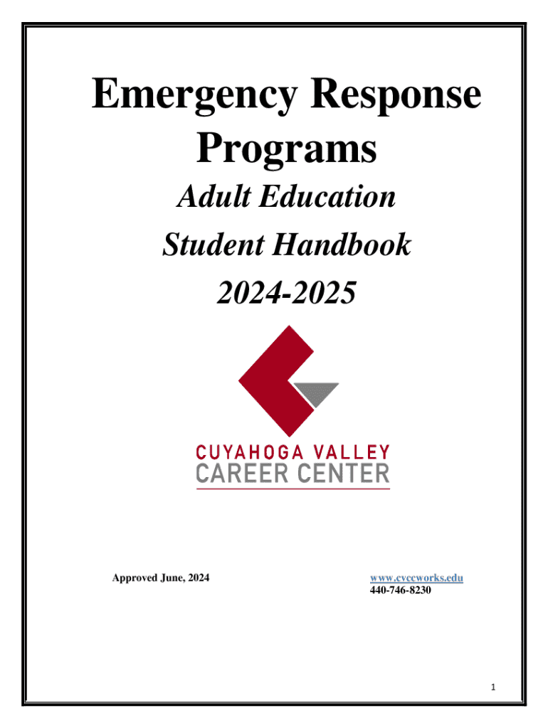 This handbook contains important information regarding the Emergency Medical Technician-Basic (EMT) program at Cuyahoga Valley Career Center. It outlines the rules, expectations, admissions criteria, course structure, testing policies, and other essential guidelines for students enrolled in the program.