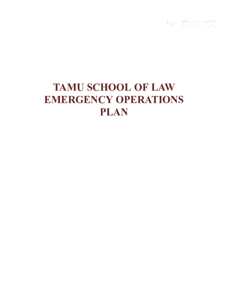 TAMU SCHOOL OF LAW EMERGENCY OPERATIONS PLANTAMU SCHOOL OF LAW EMERGENCY OPERATIONS PLAN APPROVAL AND IMPLEMENTATION This Emergency Operations Plan (EOP) was developed by the Texas A&M University