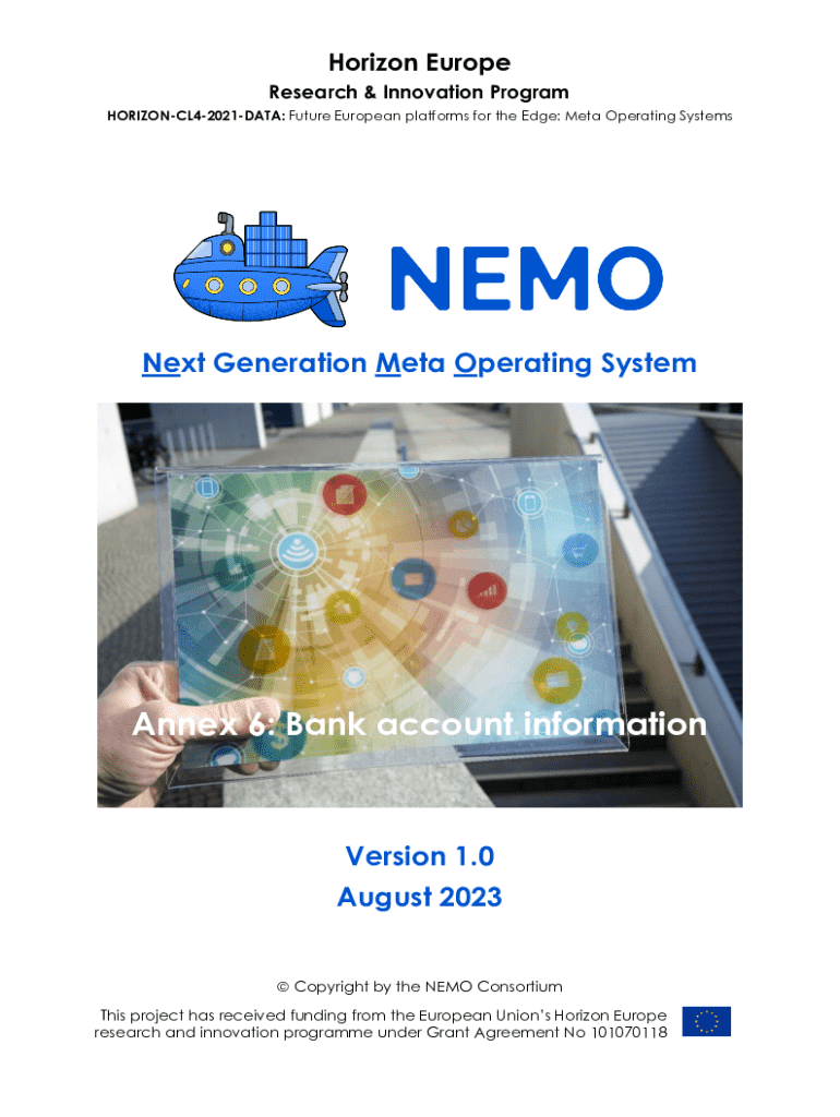 Horizon Europe Research & Innovation Program HORIZONCL42021DATA: Future European platforms for the Edge: Meta Operating SystemsNext Generation Meta Operating SystemAnnex 6: Bank account informationVersion
