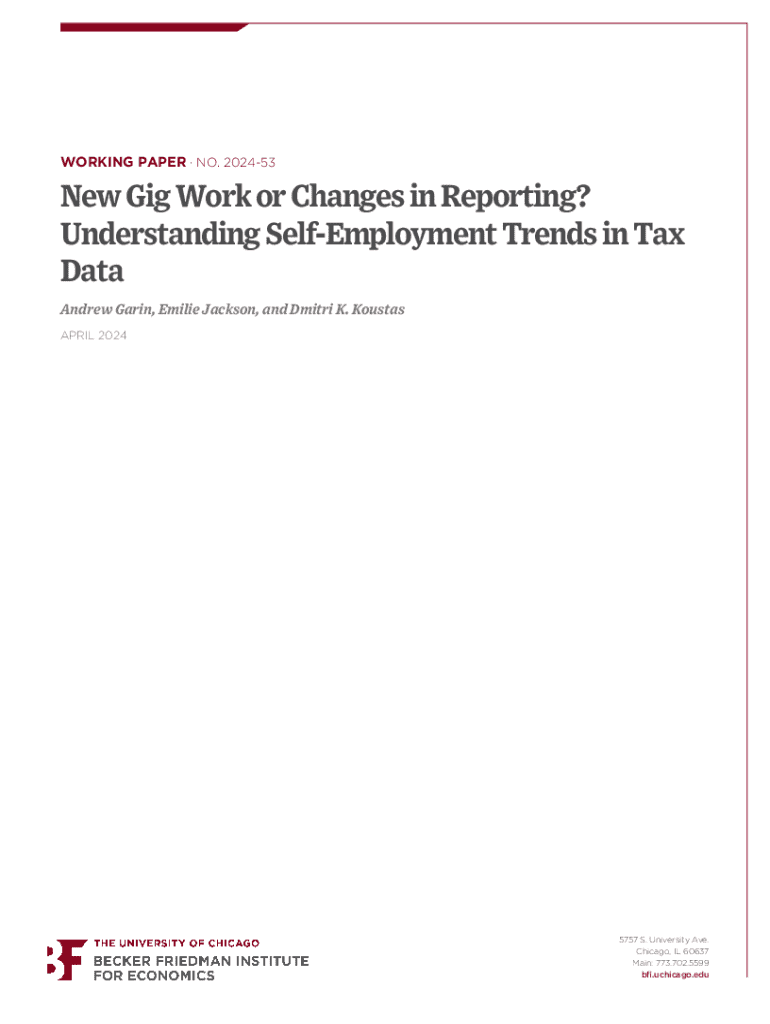 The paper explores the rising self-employment rates captured in U.S. tax data, suggesting that these trends may not reflect an actual increase in gig work, as previously speculated. Instead, the authors argue that the growth is primarily due to changes in reporting behavior influenced by the Earned Income Tax Credit (EITC) and other tax incentives. The study employs IRS tax return data to analyze the discrepancies between self-reported and firm-reported contract work, highlighting the impact...