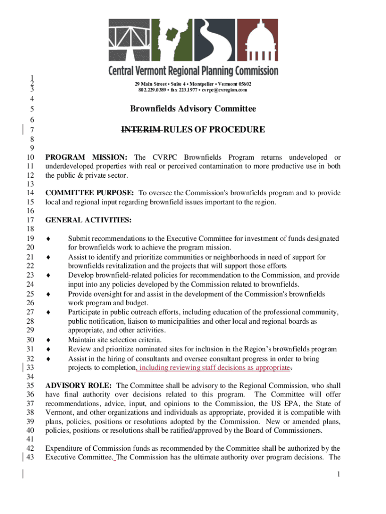 Get the free Brownfields Advisory Committee Interim Rules of Procedure