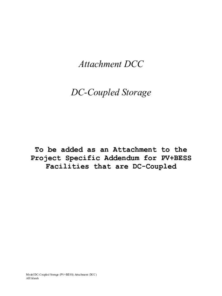 Attachment DCC DCCoupled StorageTo be added as an Attachment to the Project Specific Addendum for PV+BESS Facilities that are DCCoupledModel DCCoupled Storage (PV+BESS) Attachment (DCC) All IslandsATTACHMENT