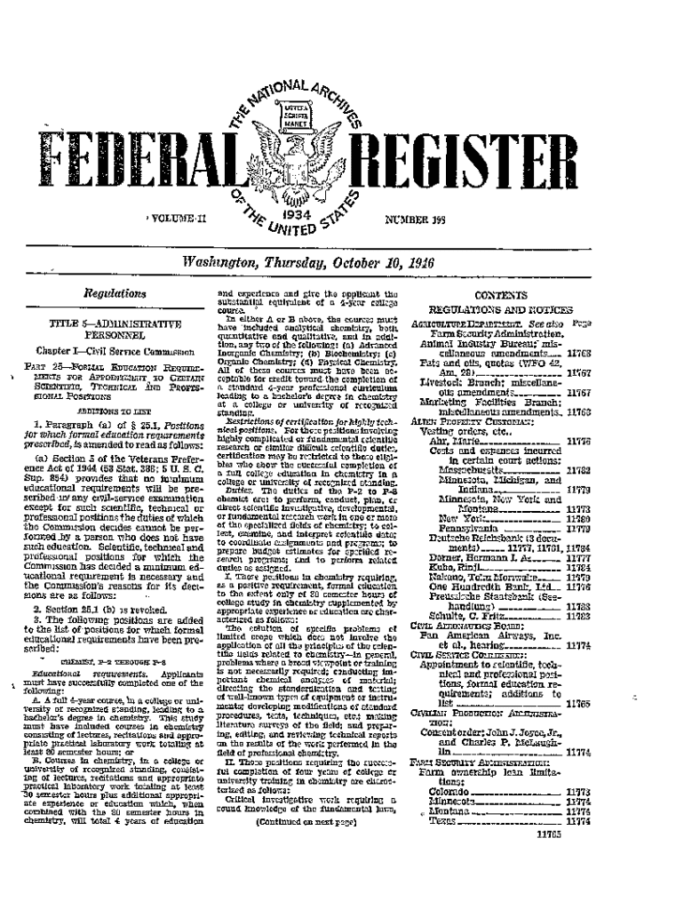 FEllEIISTEII NMBER 193Washington, Thursday, October 10, 1916 Regulations TITLE 5ADMINISTRATIVE PERSONNEL Chapter ICivil Service Commission PART 25FORlu EDUCATION REQuIREznmEsFOR APPonnmIENT To CERTAIN
