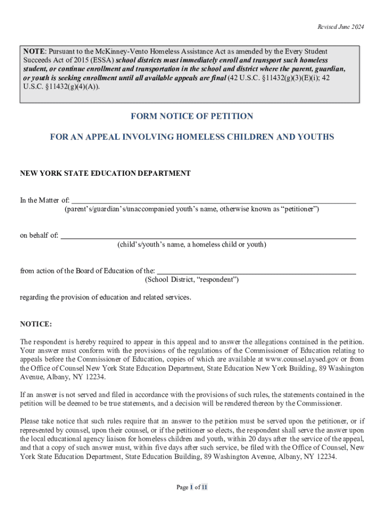 Revised June 2024NOTE: Pursuant to the McKinneyVento Homeless Assistance Act as amended by the Every Student Succeeds Act of 2015 (ESSA) school districts must immediately enroll and transport such