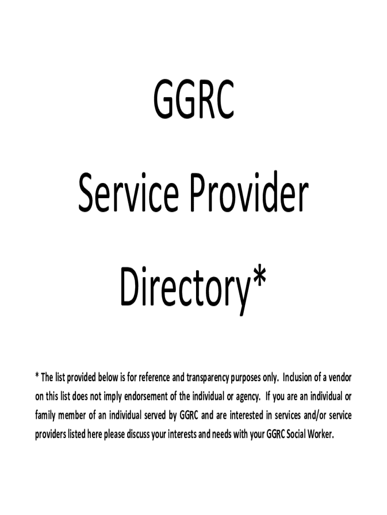 GGRC Service Provider Directory* * The list provided below is for reference and transparency purposes only. Inclusion of a vendor on this list does not imply endorsement of the individual or agency.