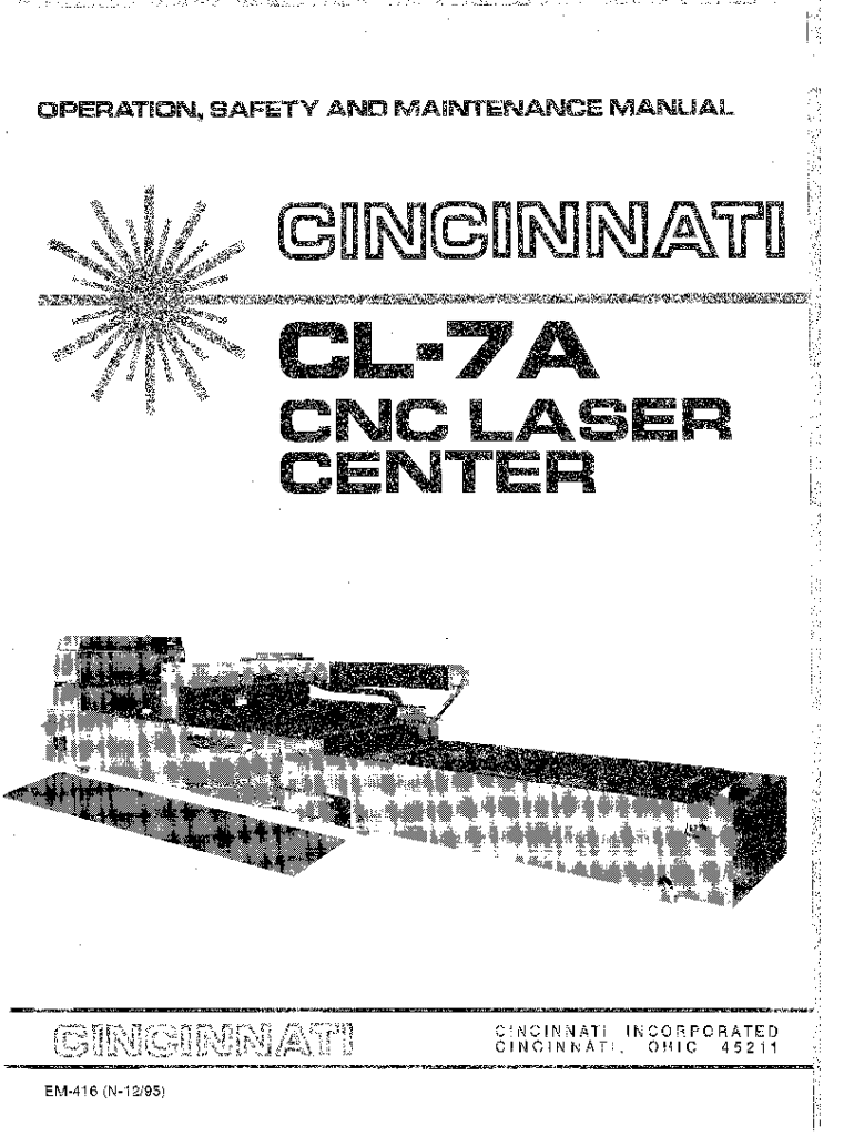 OPERATIONJ SAFETY AND MAINTENANCE MANUAL .CL7A CNCLASER CENTERCINCINNATI INCORPORATED CINCINNATI, OHIO 45211 EM416 (N12/95)o:;:::c:;:;_::::\';\'::::::1\"\'.,.::_CL7A CNC LASER CENTERINDEXINTRODUCTION