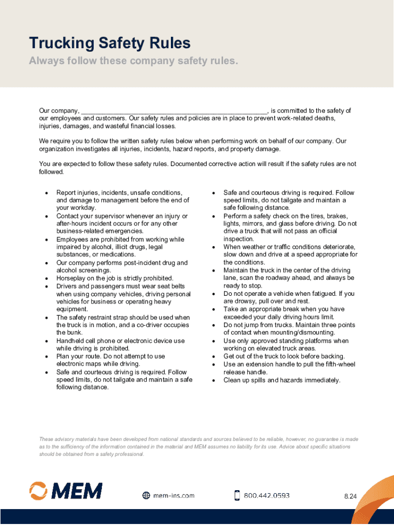 Edit your trucking safety rules and form online