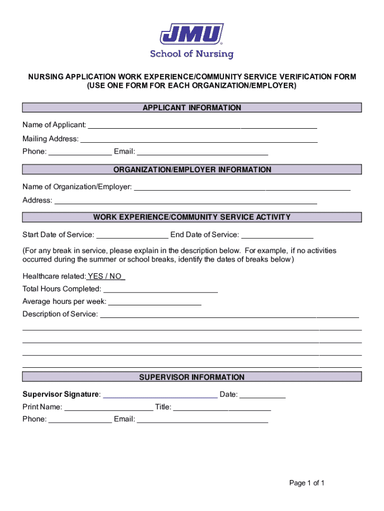 Get the free experience/community service verification form ( ...