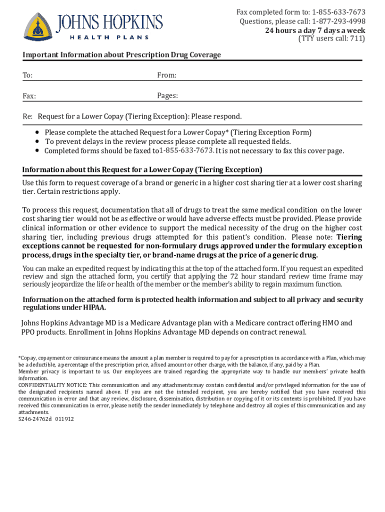 Important Information about Prescription Drug Coverage To:Fax:Fax completed form to: 18556337673 Questions, please call: 18772934998 24 hours a day 7 days a week (TTY users call: 711)From:Pages:Re: