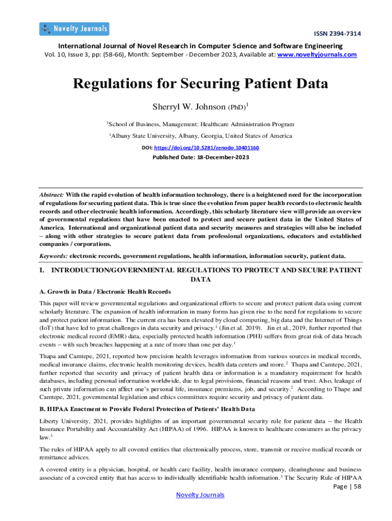 Get the free Regulations for Securing Patient Data